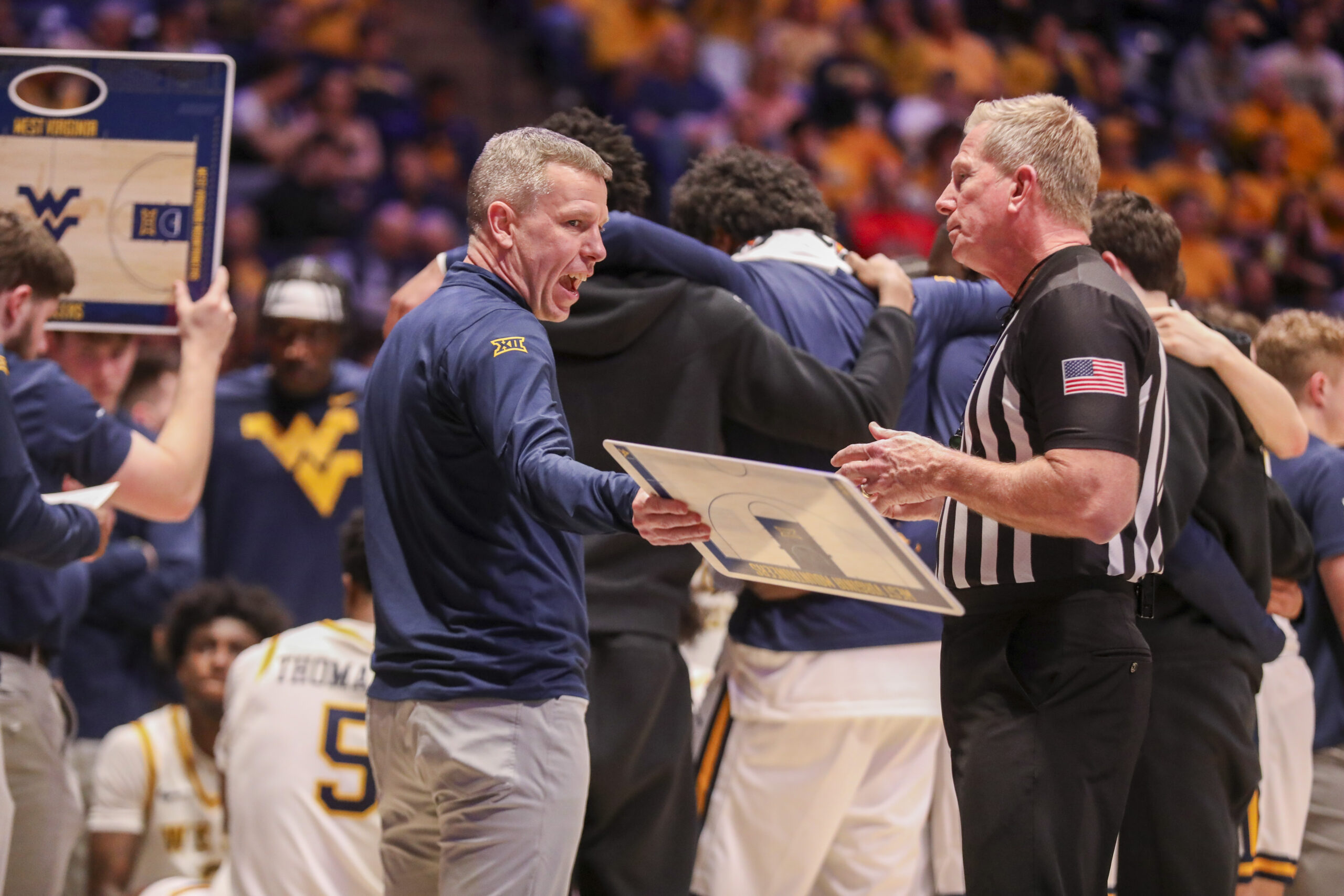 Freshman DJ Thomas’ conventional three-point play allowed the Mountaineers to lead 23-22, and Huff ran off the next five points to up the advantage to six.